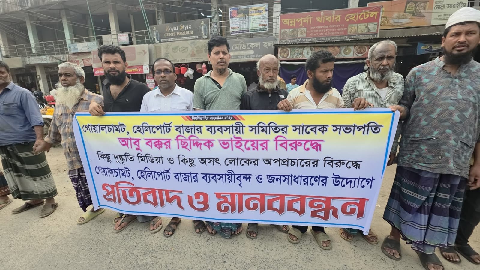 ফরিদপুরে অপপ্রচারের প্রতিবাদে ব্যবসায়ীদের মানববন্ধন