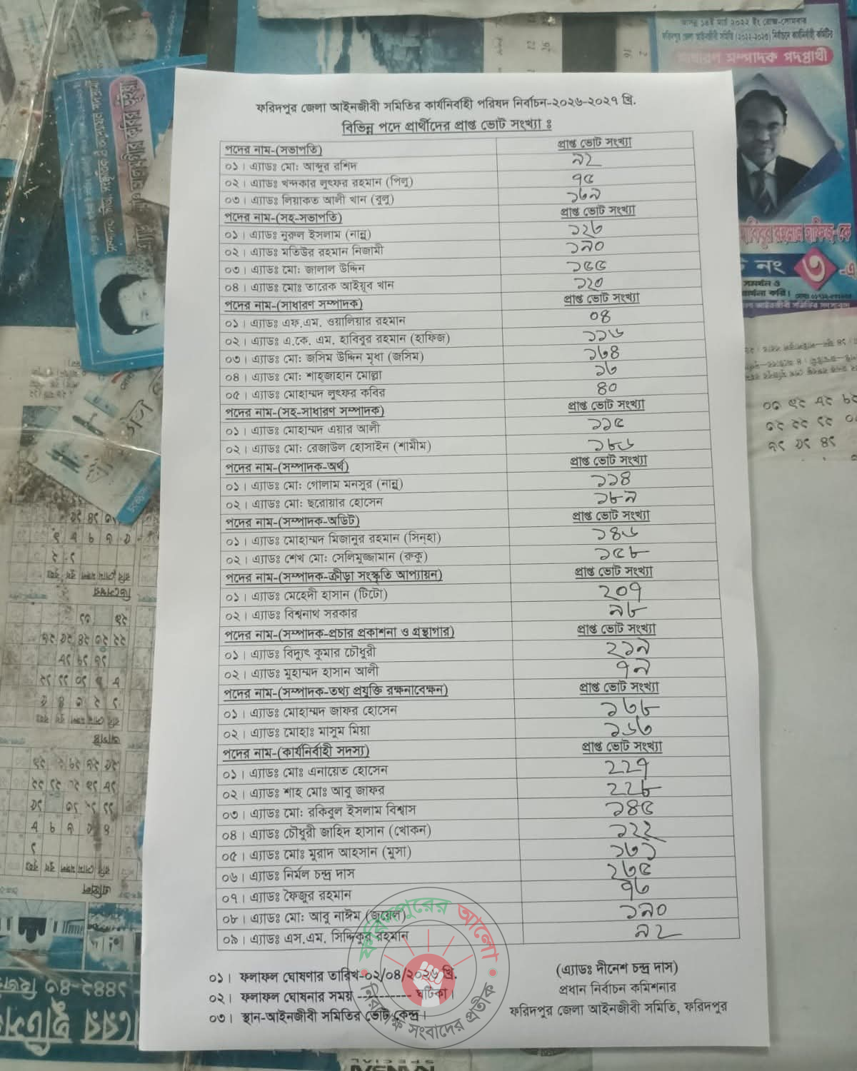ফরিদপুর জেলা আইনজীবী সমিতির কার্যনির্বাহী পরিষদ নির্বাচন অনুষ্ঠিত, ফলাফল ঘোষণা